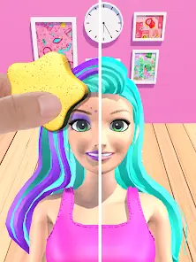 Wipe with a sponge to uncover the doll's hair color and makeup!